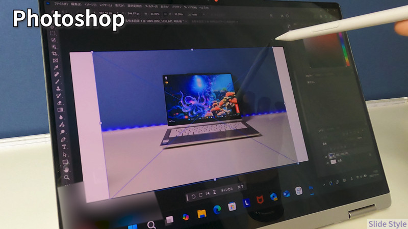 従来のノートPCと大きく違うのは、タッチパネル操作やペン入力に対応している点です。