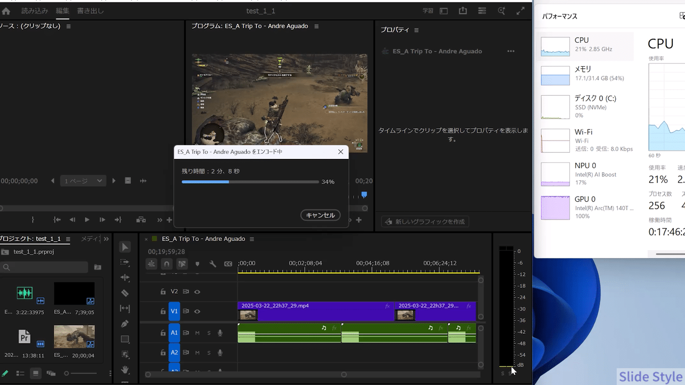 Adobe PremiereでFHD動画のレンダリングを約4分でこなせることを実測で確認しています。