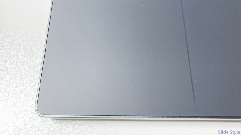 ガラス素材のタッチパッドは指の滑りがとても良く、2本指スクロールや3本指のジェスチャーがスムーズに決まります。