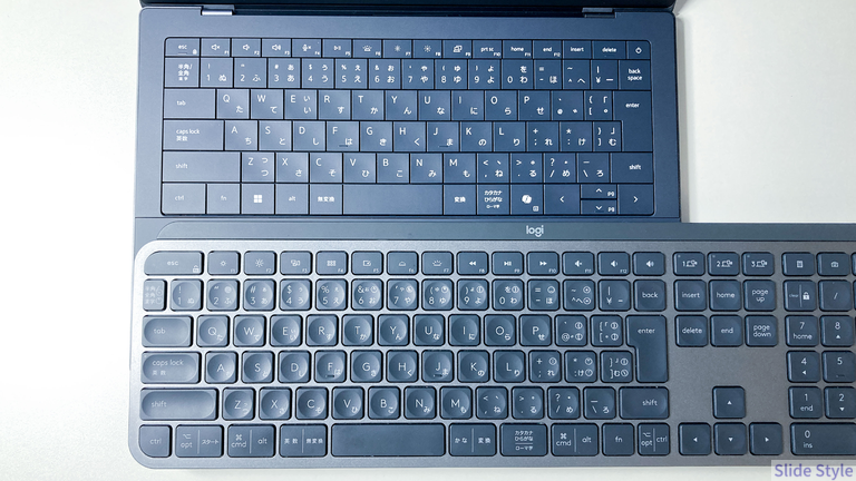 クリック感は均一で沈み込みが少なく、パームレストと統一されたフラットな見た目に仕上がっています。