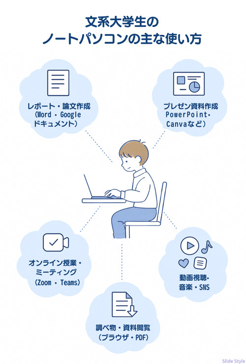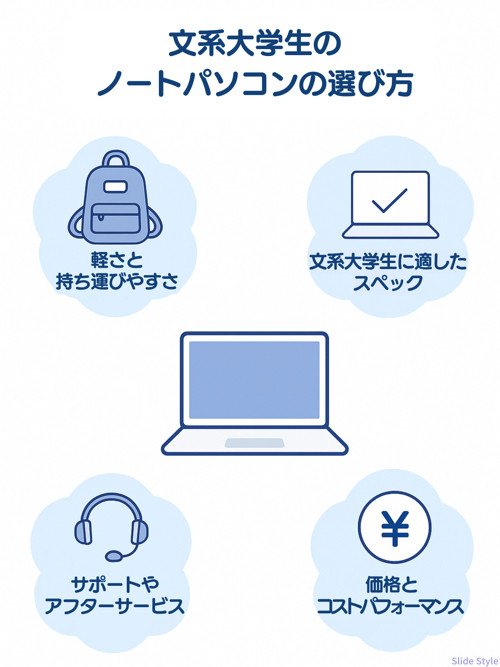 文系大学生にとって、レポート作成・オンライン授業・就職活動まで使えるノートパソコン選びはとても重要です。