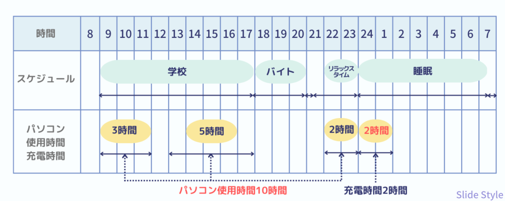 HDMIケーブルで教室のモニターに接続したりと、「差し込みたい機器が多い」のが学生生活のリアル。