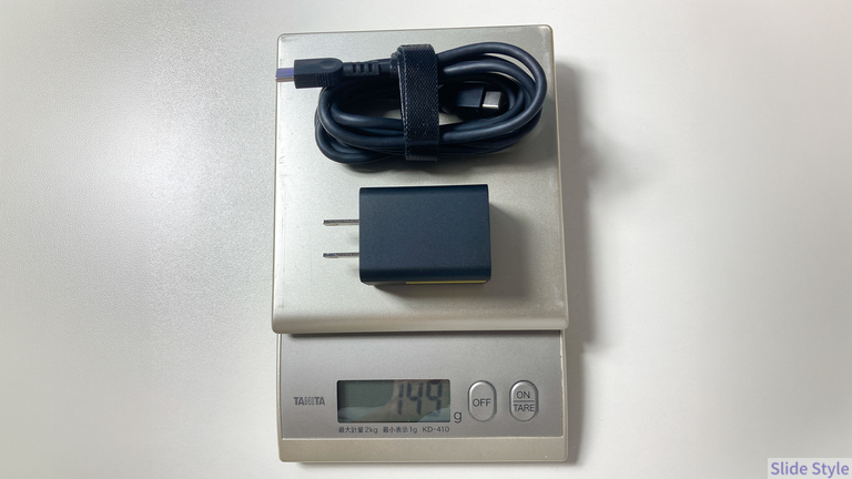 バッテリーが控えめな分、USB-C充電器を携行するスタイルになります。