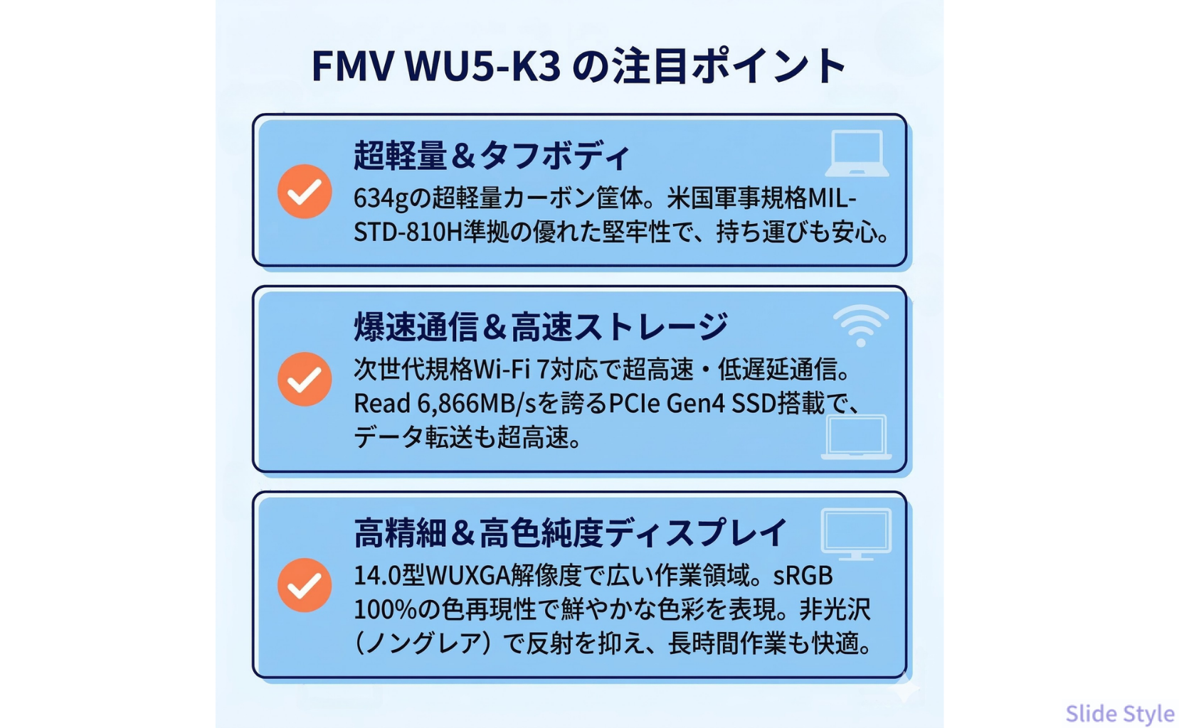 富士通 FMV Zero WU5-K3 の3つのポイント