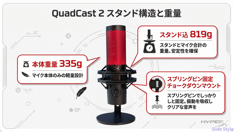 HyperX QuadCast 2はゲーム・配信・ポッドキャスト向けのUSBコンデンサーマイク。