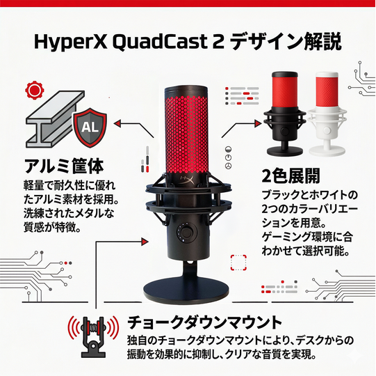 マイクのQuadCastシリーズはストリーマーや配信者に広く支持され、QuadCast 2はその最新世代にあたります。