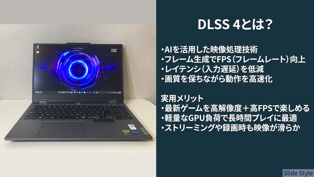 DLSS 4を有効にすれば、最新ゲームも高画質設定で安定してプレイ可能です。
