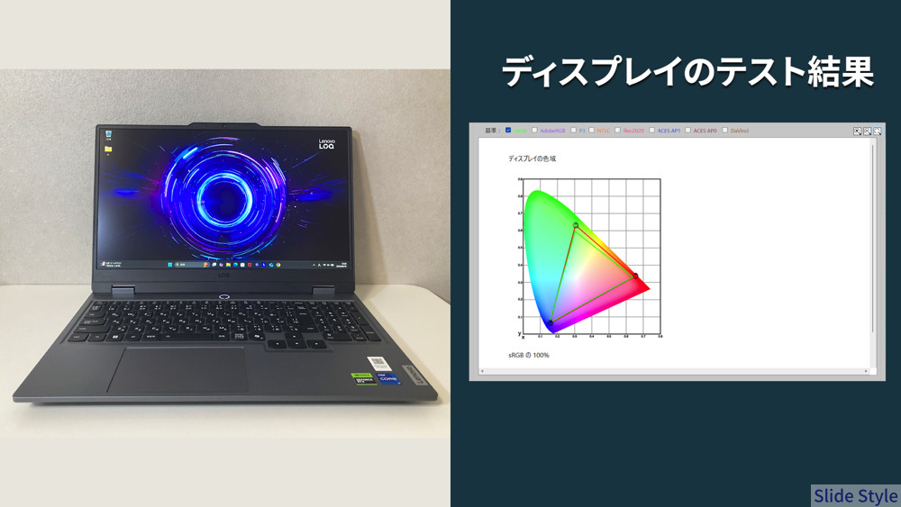 おすすめポイント3:発色豊かで滑らかなsRGB100%液晶