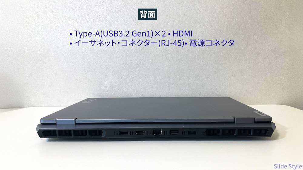 重量約2.4kgとモバイル用途には不向きですが、据え置きメインなら理想的な安定感です。