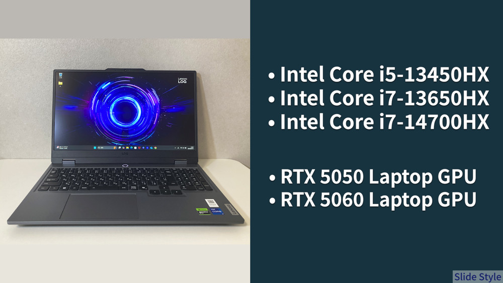 GPUは、NVIDIA GeForce RTX 5050(8GB GDDR7)またはRTX 5060(8GB GDDR7)を選択可能。