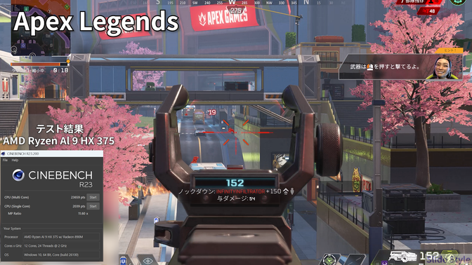 AMD版(Ryzen AI 9 HX 375)はNPU最大55 TOPSとAI処理に強みがあります。
