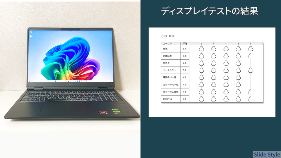 - 240Hz/sRGB 100%の高品質ディスプレイ(総合評価4.5)