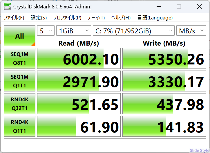 - SSD読み込み6,002 MB/s。ファイル操作からアプリ起動まで一切待たされない