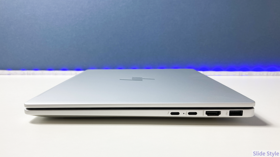 HP OmniBook 7 14-frのパフォーマンスプラスモデルは、インテルのHシリーズ高性能プロセッサーを14インチのコンパクトなボディに収めた1台です。正直、Hシリーズというと「バッテリーがもたない」「熱い」というイメージがありますよね。