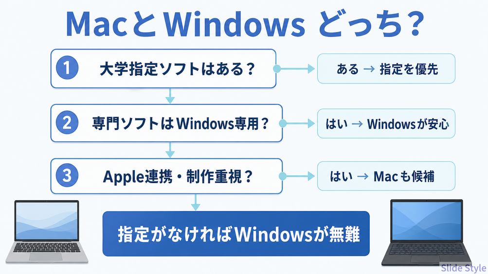 大学から指定がない場合、多くの学生にはWindowsが無難です。