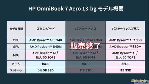 “OmniBook 7 Aero 13-bg”には、メモリ32GB、ストレージ1TBのパフォーマンスプラスモデルが、このモデルから登場。